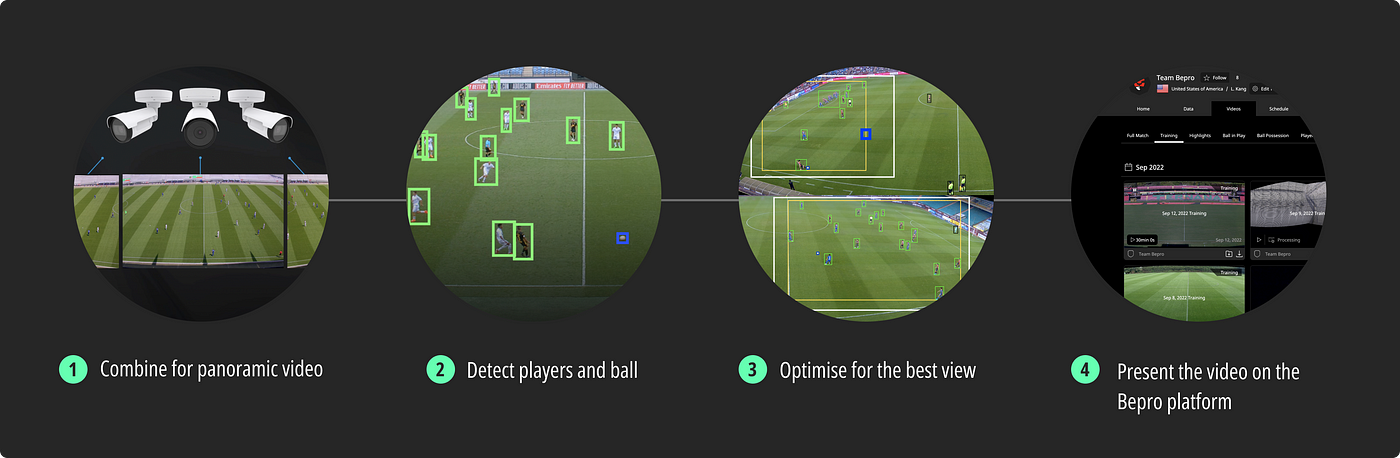 In order for the camera to show the ideal section of the entire panorama (video), we need to assess what is happening on the field, and in order to do that we need to know where the players and the ball are. To obtain this information, we make use of object detection technology.