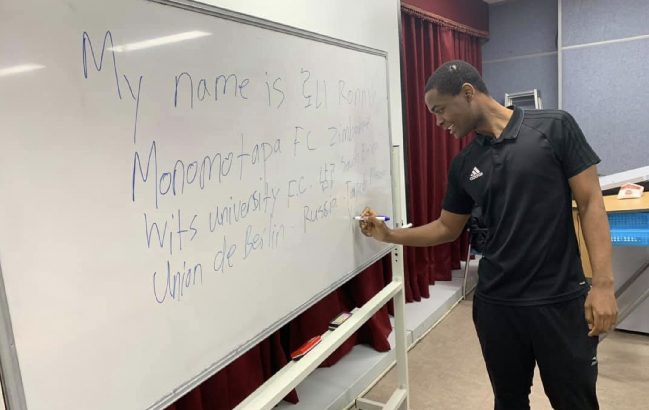 The second reason to gather the players together is to improve their language skills. One of my friends Ronnie, who is from Zimbabwe and played in Germany and Russia, is teaching the boys to give them an extra benefit. Learning English through football is more interesting than the normal language lessons. I believe these language skills make them think more widely in the future.