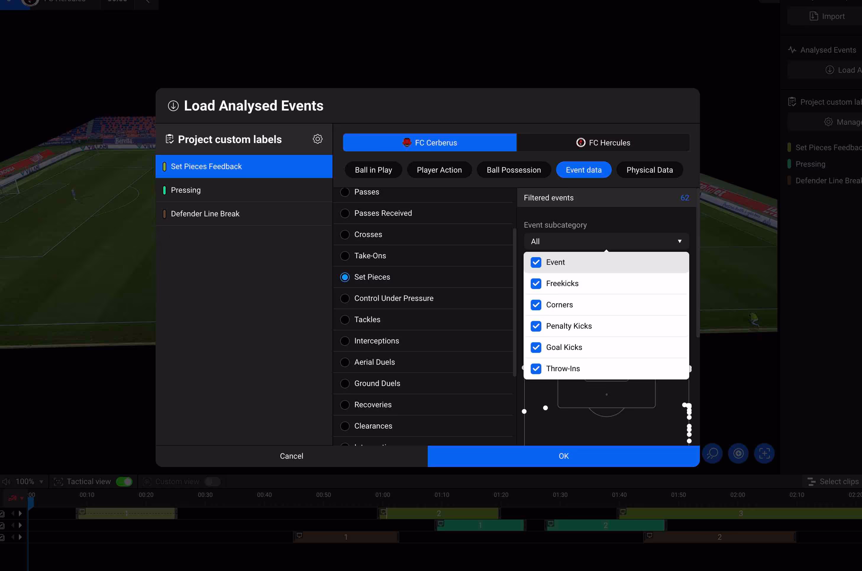 Event data includes : Goals, Shots, Passes, Crosses, Setpieces and much, much more