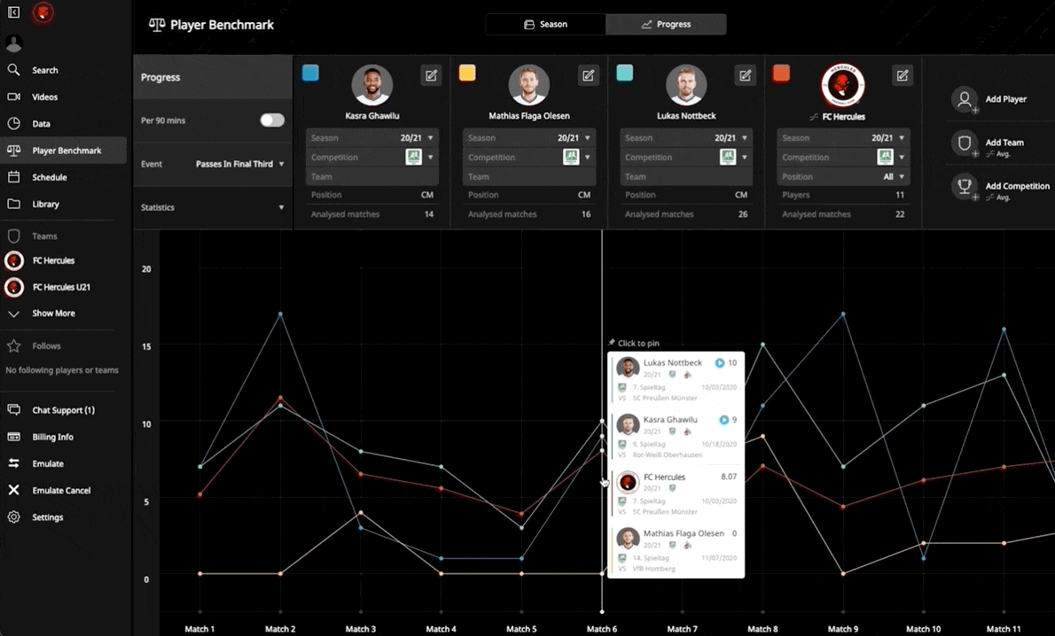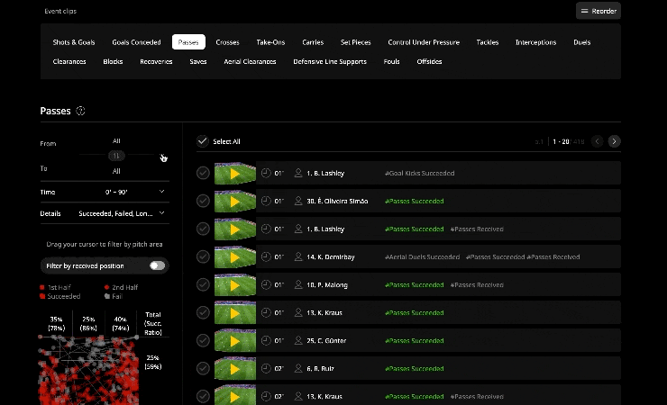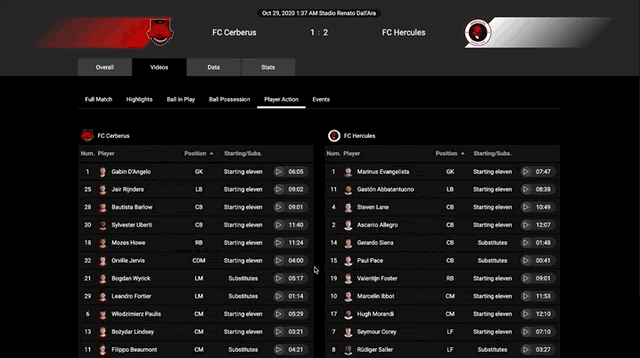 Your full match video analysed & organised to provide event data and video clips, available in real time or post match