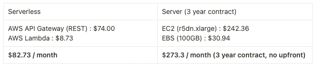 We can see that the AWS serverless environment is about 70% cheaper.