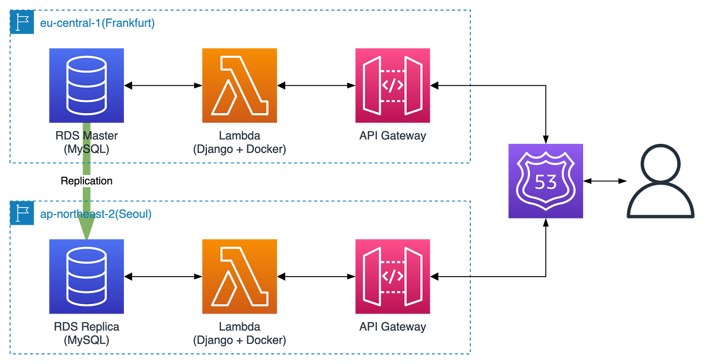 We tried to optimise our API response latency by configuring Europe and Asia as multiple regions to provide global services. We also deployed a Lambda environment using Docker containers. All of this serverless management is done by Zappa, an open source tool.