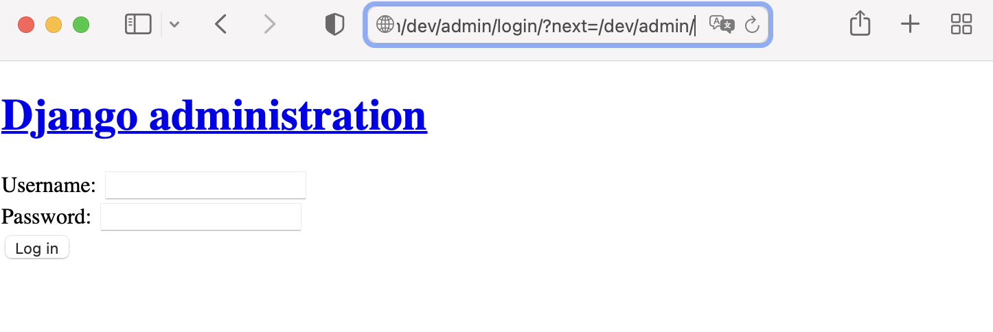 We can connect to the local Django server through your browser. (In this example, we will not implement any functions, but simply test by accessing the Django admin login page.)