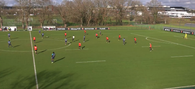 Secondly, (using football as an example) you must think in terms of player blocks to avoid focusing on the ball. Getting images with all 20 outfield players is key - avoid the temptation of following only the ball and zooming in during offensive actions. However, a higher zoom can be relevant during set pieces, to capture a better view of the event.