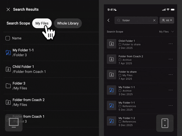 You can quickly find the folders and videos you need through keyword input and creator filters.